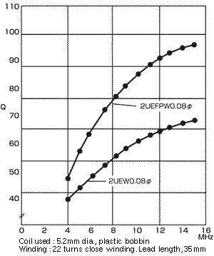 ●Measurement example 1 f-Q characteristics of 2UEFPW. 0.08mm dia.,for 4.5MHz