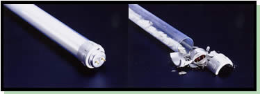 現在お使いの蛍光管をバンガードに通します。両端にシリコンキャップを固定するだけで、誰でも簡単に取り付ける事ができます。蛍光管の寿命がきても簡単に取り替えられ、繰り返し約10年使用可能です。